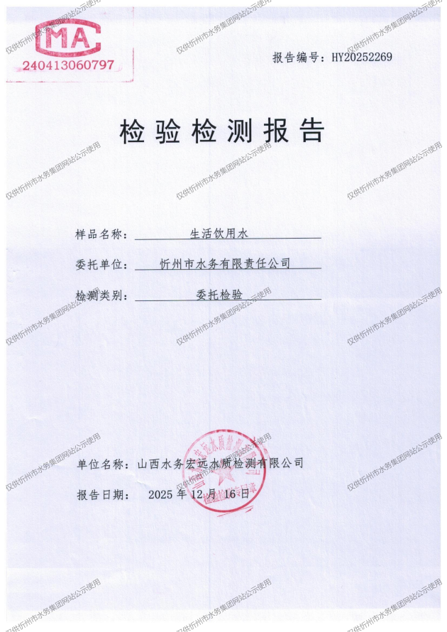 2025年忻州城區(qū)公共供水南水廠、三水廠、云中水廠出廠水97項水質(zhì)全分析